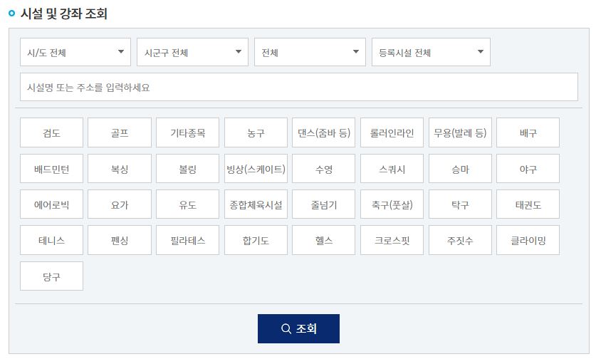 운동시설 및 강좌 조회